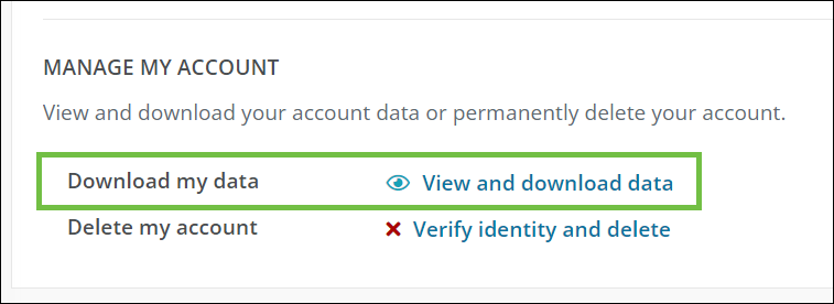 In the Manage My Account section, click on the View and download data link next to Download my data.