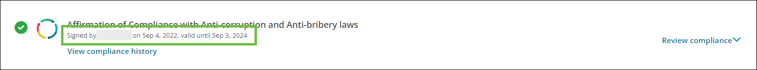 Once accepted, compliance agreements are typically valid for two (2) years. When the agreement is set to expire and it is time to renew, you will be notified via email and an alert will appear in the Compliance / Affirmations area.