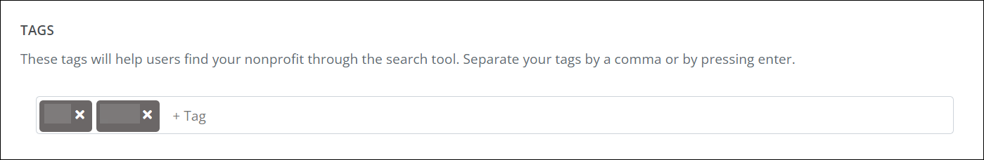 Tags and keywords can be added to your organization's profile to make it easier for potential donors to find you.