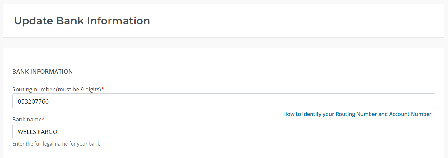 Tip: Click on the new How to identify your Routing Number and Account Number link next to the Routing Number field to view an example check with these attributes highlighted.