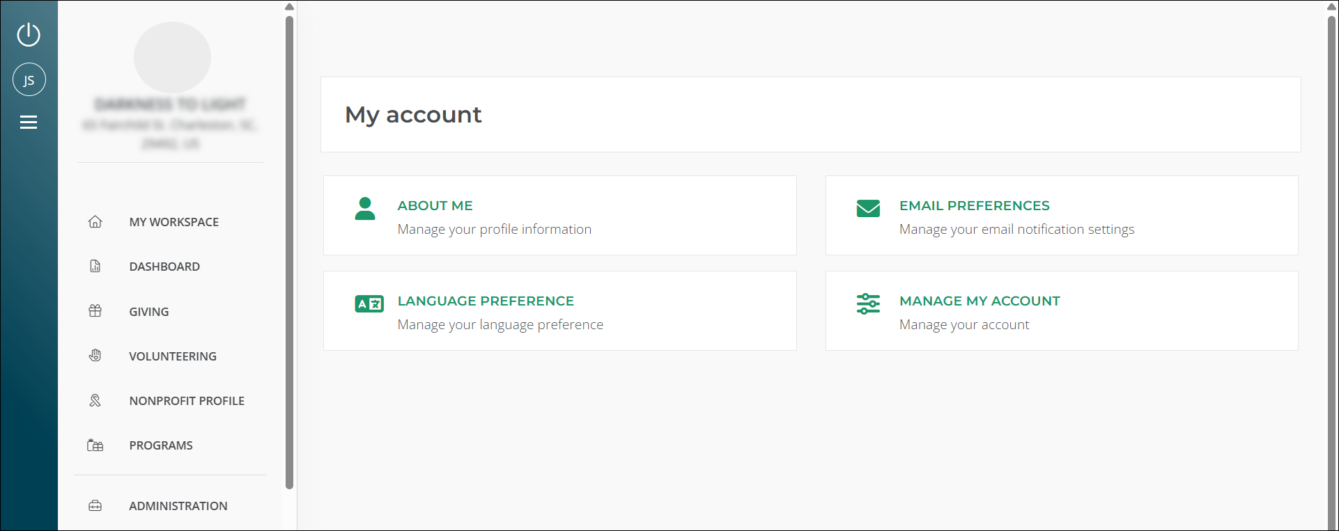 We changed My Account to show only settings managed in Blackbaud Verified Network. Your email, password, and other account details stay in Blackbaud ID (BBID).