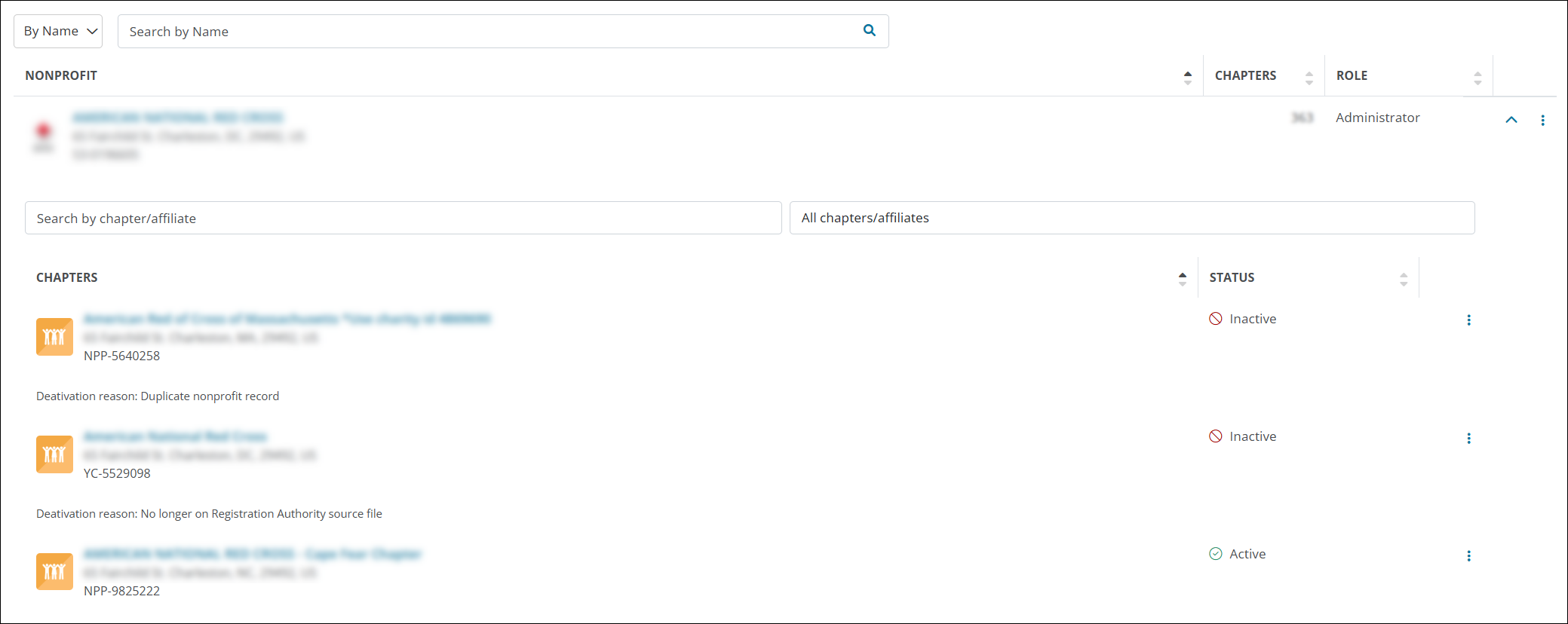 To help nonprofit administrators distinguish between chapters with similar names, areas like My Nonprofits now display each chapter’s Registration ID below its name and address. Previously, the Registration ID for the parent organization was shown instead.