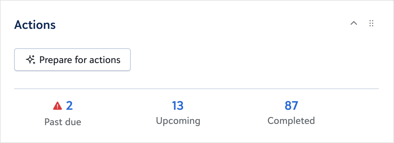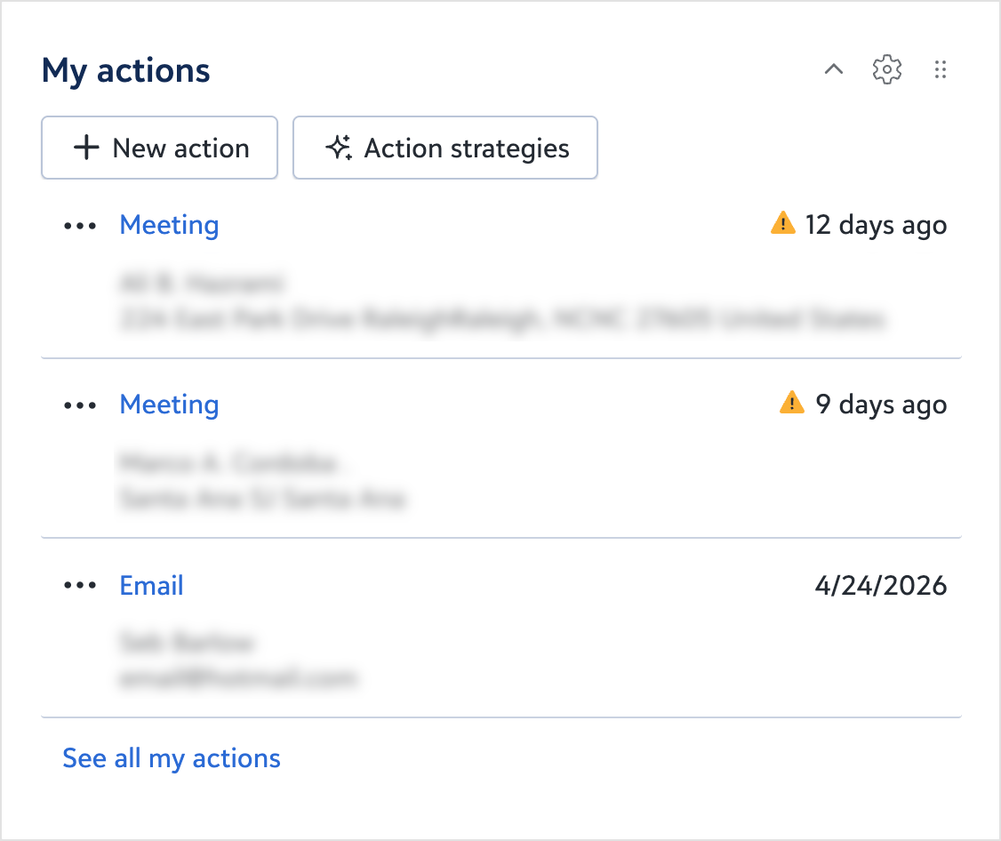 Start with actions that are due or coming soon, so you’re working the queue that matters most right now.