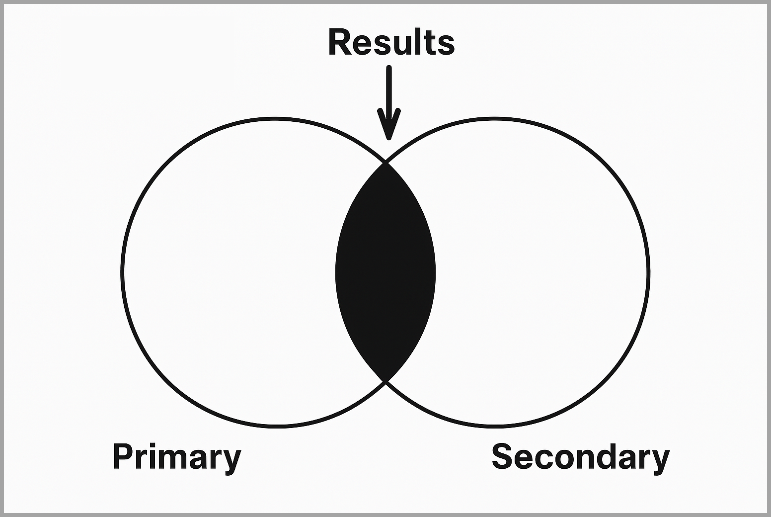 Records that exist only in the primary query are included. This operator subtracts records in the secondary from the primary query. For example, you may want to create a merged query of donors that have given in the past but are not alumni.