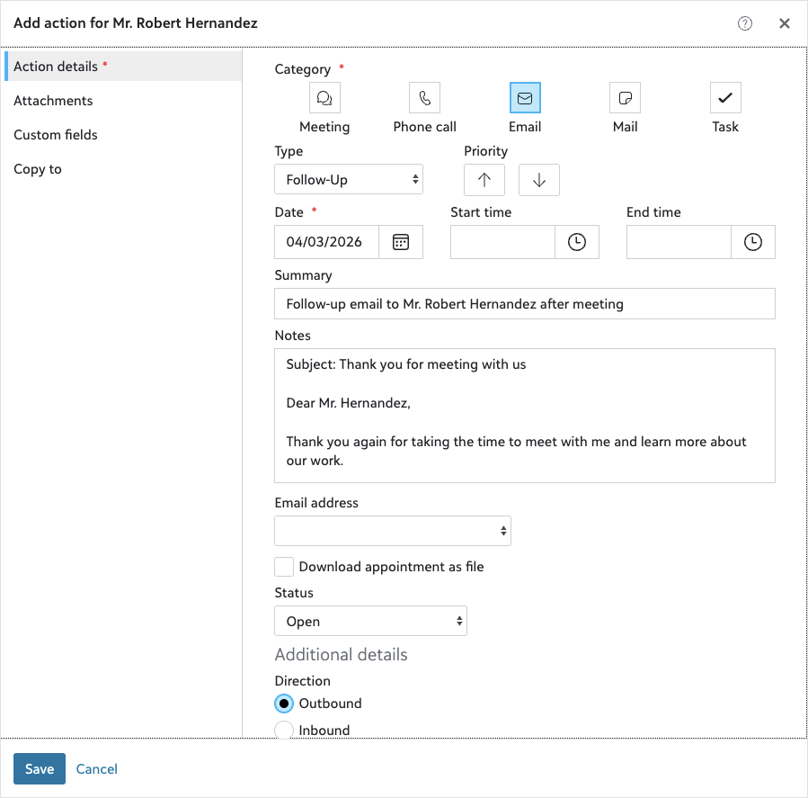 After reviewing the first response, use this follow-up prompt to create the action record.