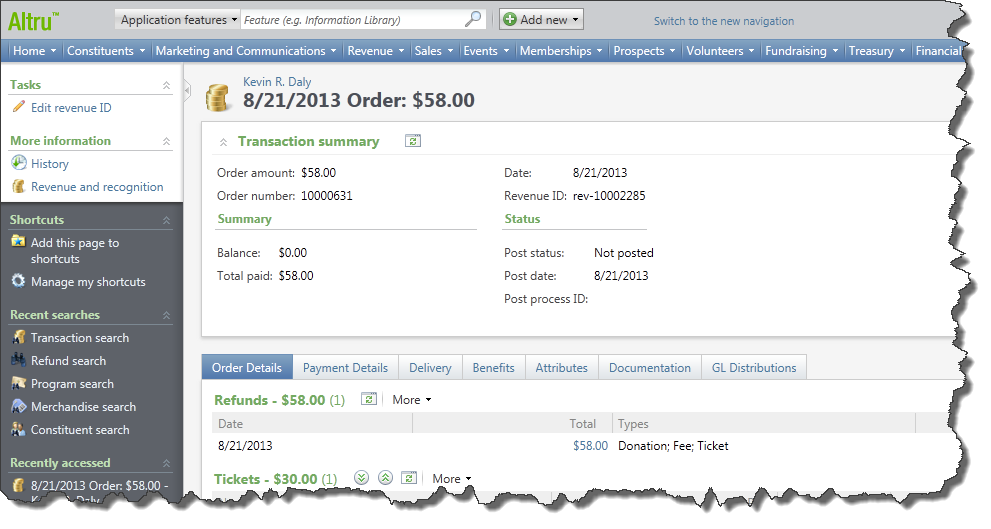 Previously, the revenue record displayed refunded items in red text. Now, under Order Details, there is a new Refunds section that displays all refunds associated with the order. We also removed the Refund tab.