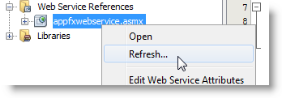 Specify the WSDL file location as the location of the modified WSDL file described in Create Modified WSDL for AppFxWebService to Bind Using JAXB or JAX-WS. Here is a copy: appfxwebservice.asmx.wsdl.