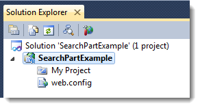 Open your Parts project in Visual Studio. This example uses a project called SearchPartExample.